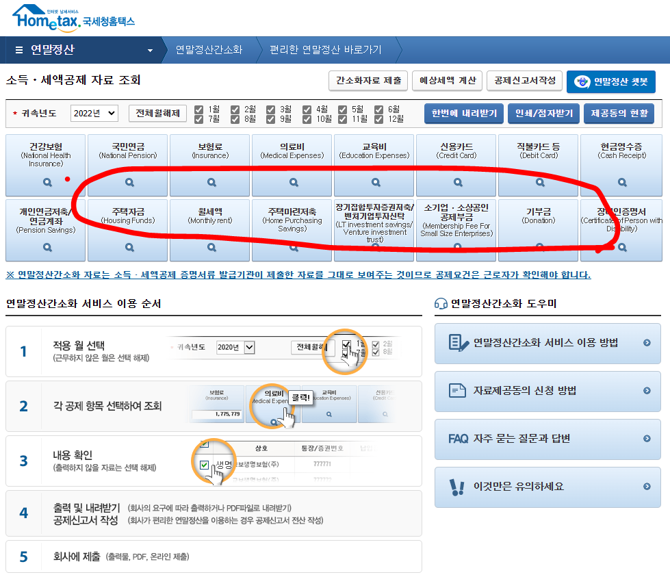 실제로 연말정산 할때 뭘 더 넣고 빼고, 작성하던 옛날과 달리, 이제는 그냥 이 정도만 해도 많은 부분 준비를 한 것입니다.