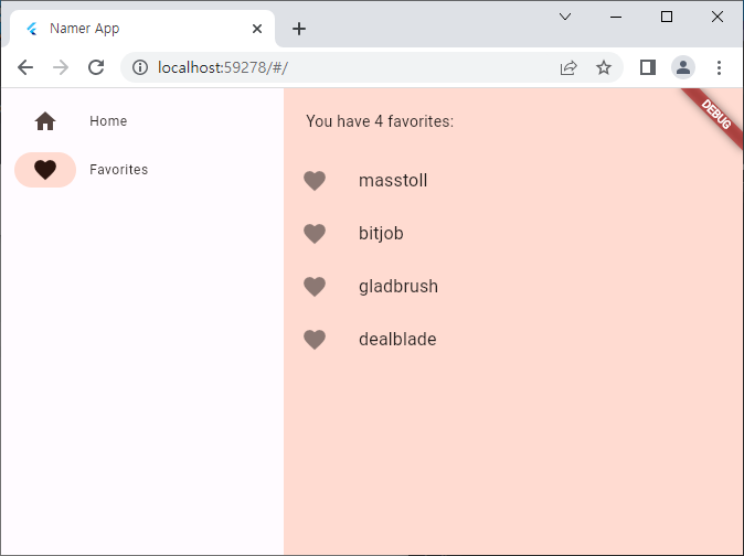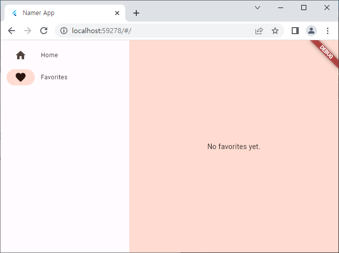 이제 NavigationRail의 Favorites를 누르면 이 위젯이 뜨도록 수정하면 모든 준비는 끝!