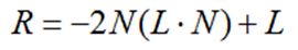 시선과 반사광 사이의 각도로 Specular를 구하기 때문에, 먼저 반사광 R을 구해야 하는데, 간단한 벡터 식으로 구할 수 있습니다. .