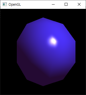 비교를 위해서 Shininess를 다시 128로 해두고, 구의 vertex 개수를 아주 팍 줄여보겠습니다.