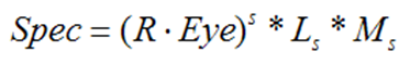 이제 R은 구했고, 이를 이용하여 Specular를 구하는데, 이것은 Shader의 앞 부분에서 소개했던 Phong 모델에 표현되어 있습니다.