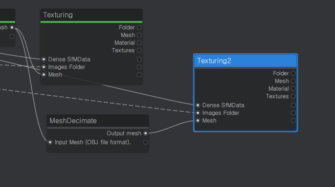 그 다음은 Decimate가 된 새 mesh에 다시 Texturing을 하기 위해, 기존에 있던 Texturing node를 복제합니다.