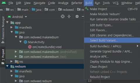 Select Build Variant를 선택하면, 빌드 모드를 선택 할 수 있습니다.