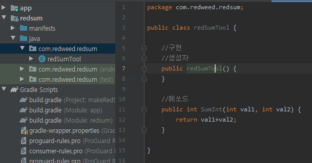 프로젝트 이름과 다르게, 이제 이 라이브러리의 역할에 맞는 이름을 넣어줍니다. redSum이라고 더하기를 해 주는 라이브러리를 만들겠습니다.