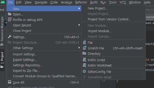 헛... 매뉴가 비활성화?????? 프로젝트를 만들고 난지 얼마 되지 않아서 프로젝트를 빌드 중이라서 그런 것 같습니다.