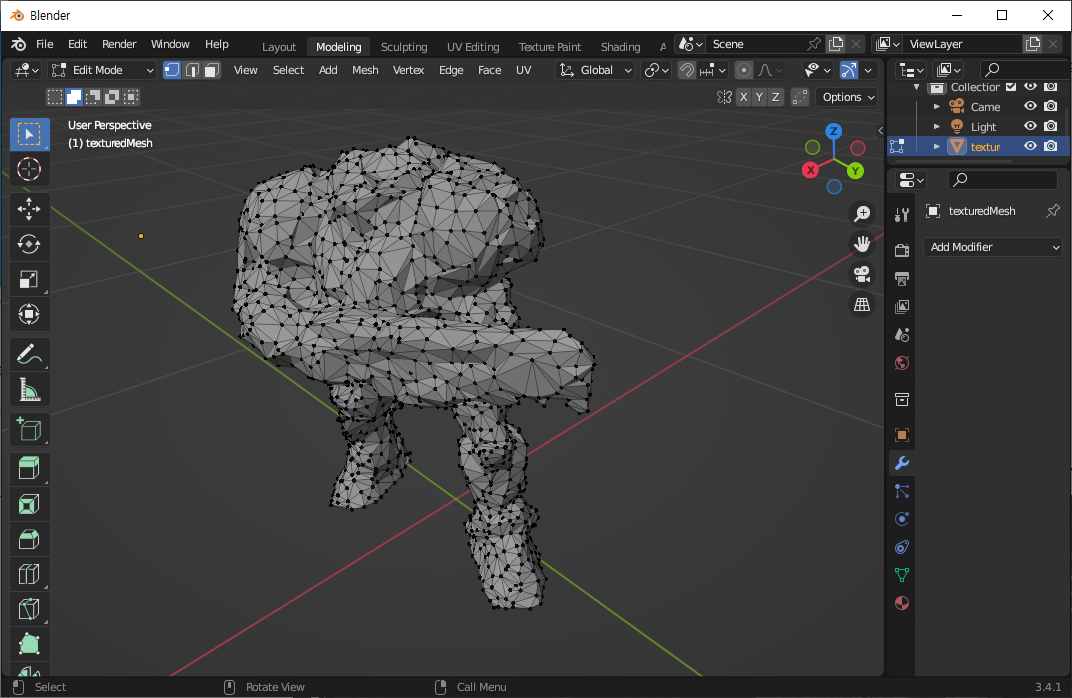 Blender가 익숙하지 않기 때문에 좀 어려워 방향을 맞추고 불필요한 데이터를 지우는 과정 정도만 해보았습니다. 사실 좀 노가다 같은 일이었던 것 같네요. 결과적으로 아래와 같이 오브젝트 데이터만 남겼습니다.