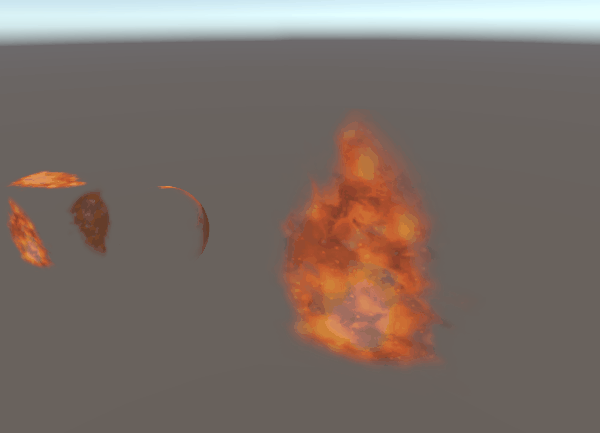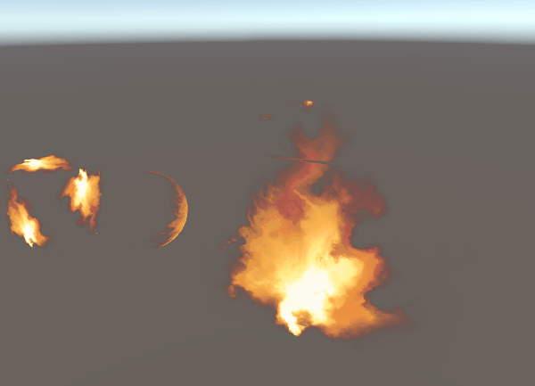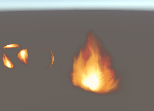 lerp를 사용해서 두 불꽃을 좀 섞어봤는데, 0.8 정도로 섞으니까 가장 좋아보이네요. 하지만 뭔가 좀 아쉬운...특히 불꽃의 윤곽 모양이 고정되어 있어서 특히 어색하게 보이는 것 같습니다. 올라가는 불꽃의 알파 변화가 좀 더 있으면 좋을 것 같아요.