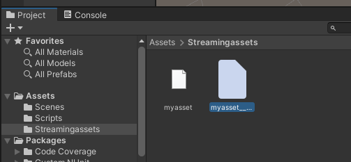 필수적인 사항은 아니지만, Asset Bundle 파일이 확장자가 없어서 혹시라도 폴더나 경로 이름으로 잘못 인식 될 수도 있어서, 뒤에 .asset 등 적당한 확장자를 붙여서 쓰는 것도 좋은 것 같습니다. 붙이지 않아도 사용에는 아무 문제가 없어요. 어쩌면 사람을 위한 조치라고 볼 수 있겠네요. 주석같은~
