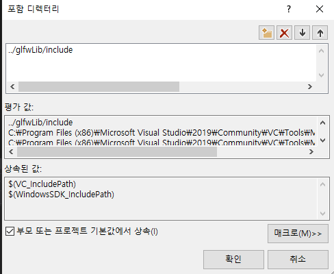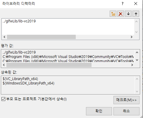 OpenGL은 이제 보편적으로 많이 쓰이는 라이브러리이고, 다양한 개발 툴이나 런타임 패키지에서 이 파일을 배포하고 있습니다. 앞에서 만든 VS 프로젝트를 보면, 사용자가 추가한 경로 외에도 프로젝트에 기본적으로 설정 된 여러가지 경로들이 있습니다. 시스템 상에 설치되어 있는 Windows 개발용 툴들의 library 경로들이죠. OpenGL32는 아래 표시 된 경로 중 하나에 있는 것을 실제로 확인 해 볼 수 있습니다.