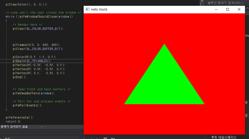 처음 만들었던 샘플 코드에 삼각형을 그려주는 코드를 추가합니다.