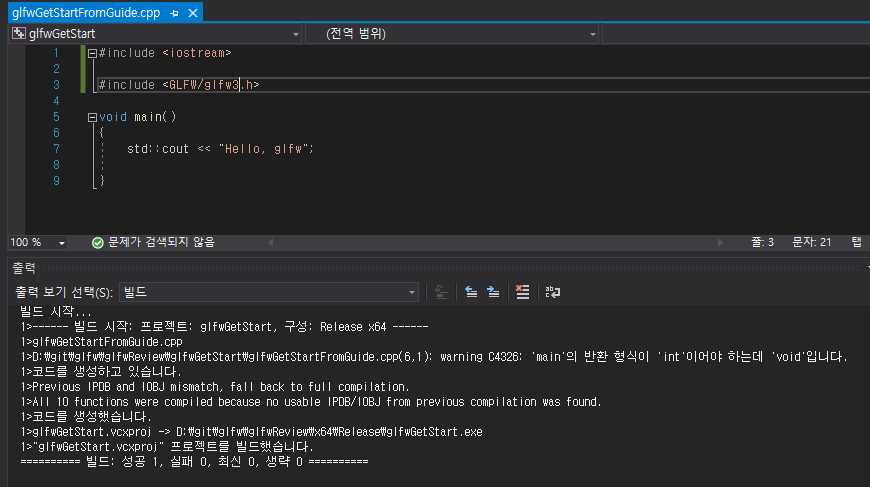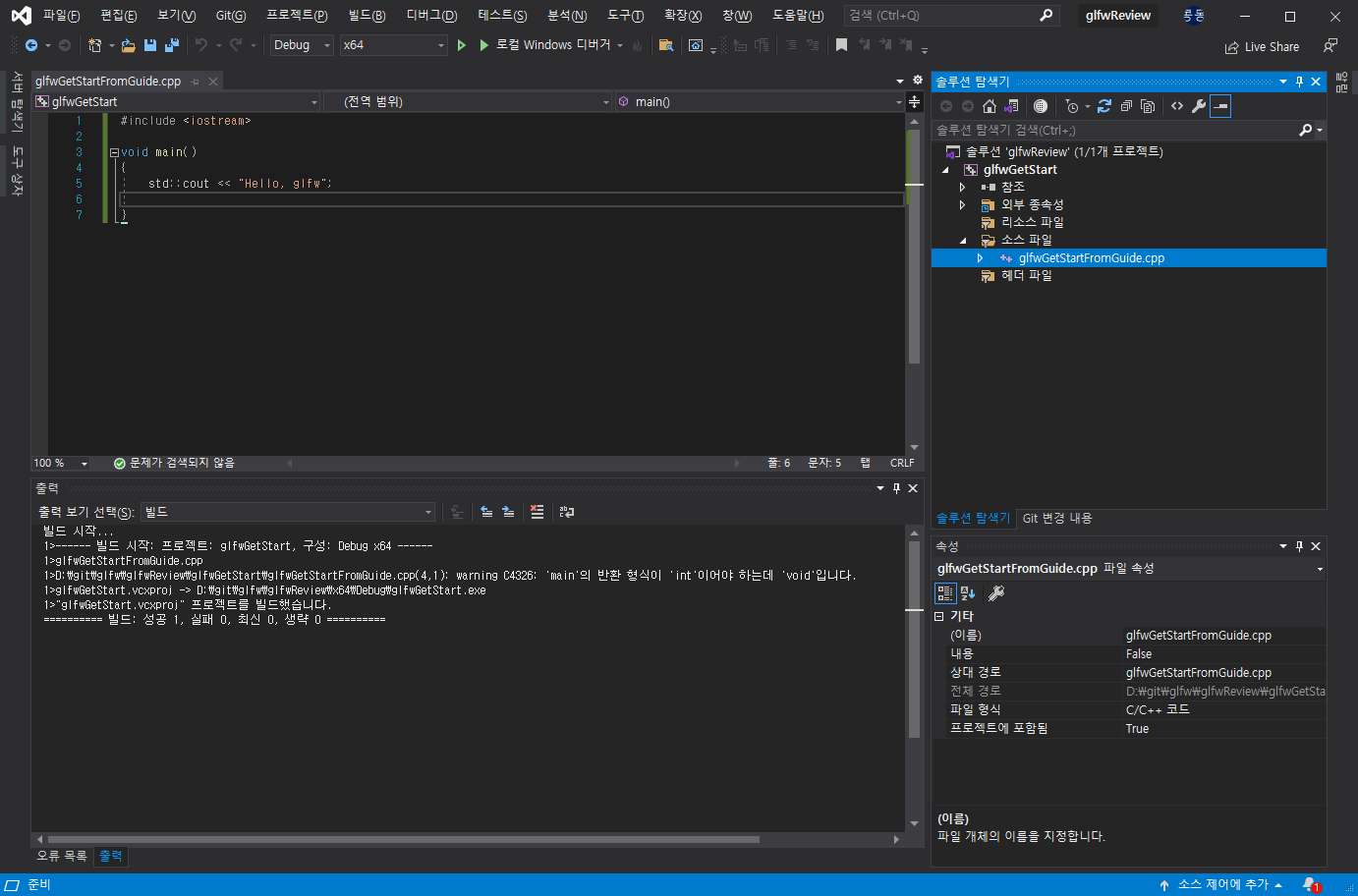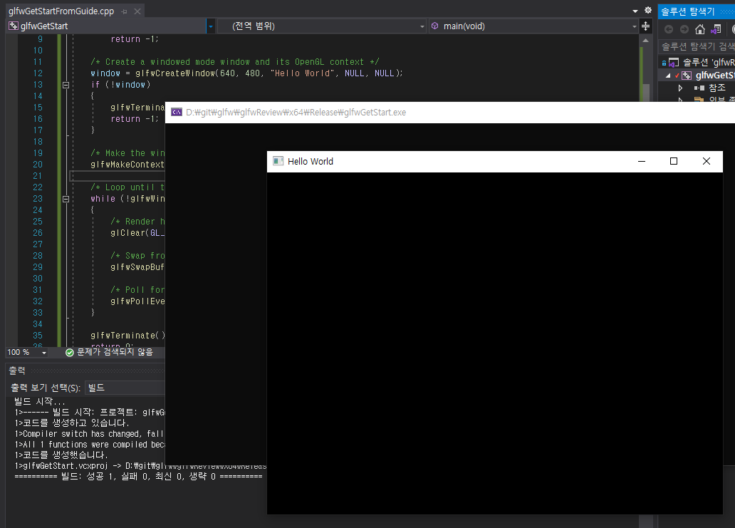 프로젝트 다 만들었으면 Hello, World는 한번 해줘야하니, Hello, glfw!