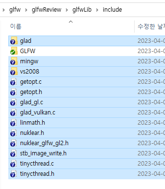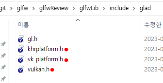 거기 있던 것을 include 폴더에 쏙~~ 집어넣어주고, 그 안에 gl.h나 glad.h도 있는 것을 볼 수 있습니다. 그런데, vulkan도 있네요.