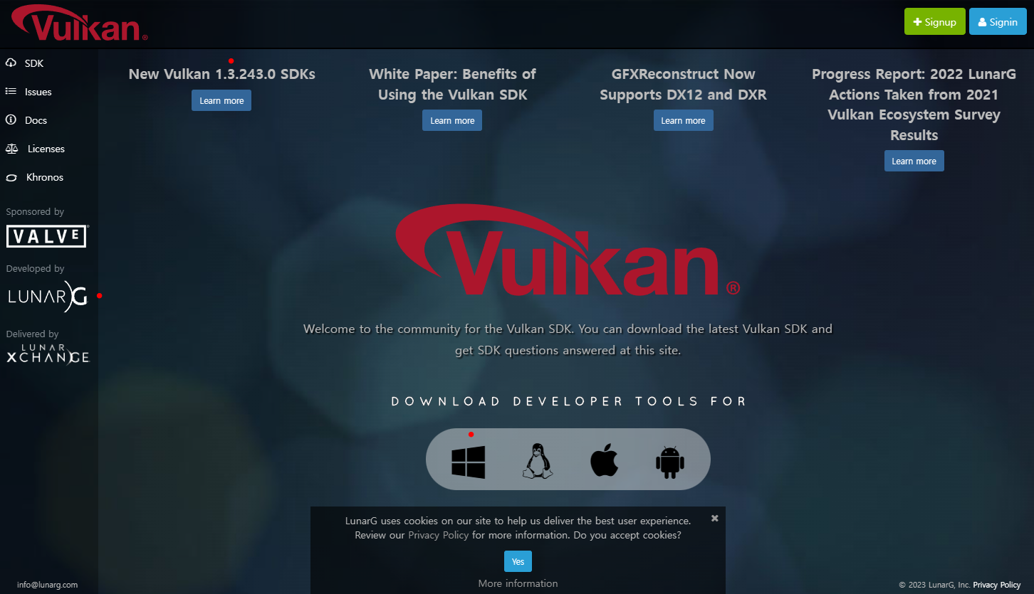 오호! Vulkan을 사용 할 수 있다고 하네요. 초창기에 딱 봐도 어려워보여서 아예 시작을 말아야지 했었는데 개발 환경이 많이 사용자 친화적으로 된 것 아닌가 싶네요. Vulkan SDK 제공되는 페이지들도 있고.