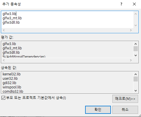 위 오류를 보면 glClear를 사용 할 수 없다는 에러인데요, glClear는 glfw가 아니라 opengl의 함수입니다. 즉, glfw만 추가한다고 해서 opengl을 다 사용 할 수 있는 것은 아니죠. 요것은 freeglut 기반으로 opengl 개발환경 만들 때도 동일하게 처리했던 내용입니다. 즉, opengl32.lib를 사용 할 수 있게 해줘야 하는 것이죠.