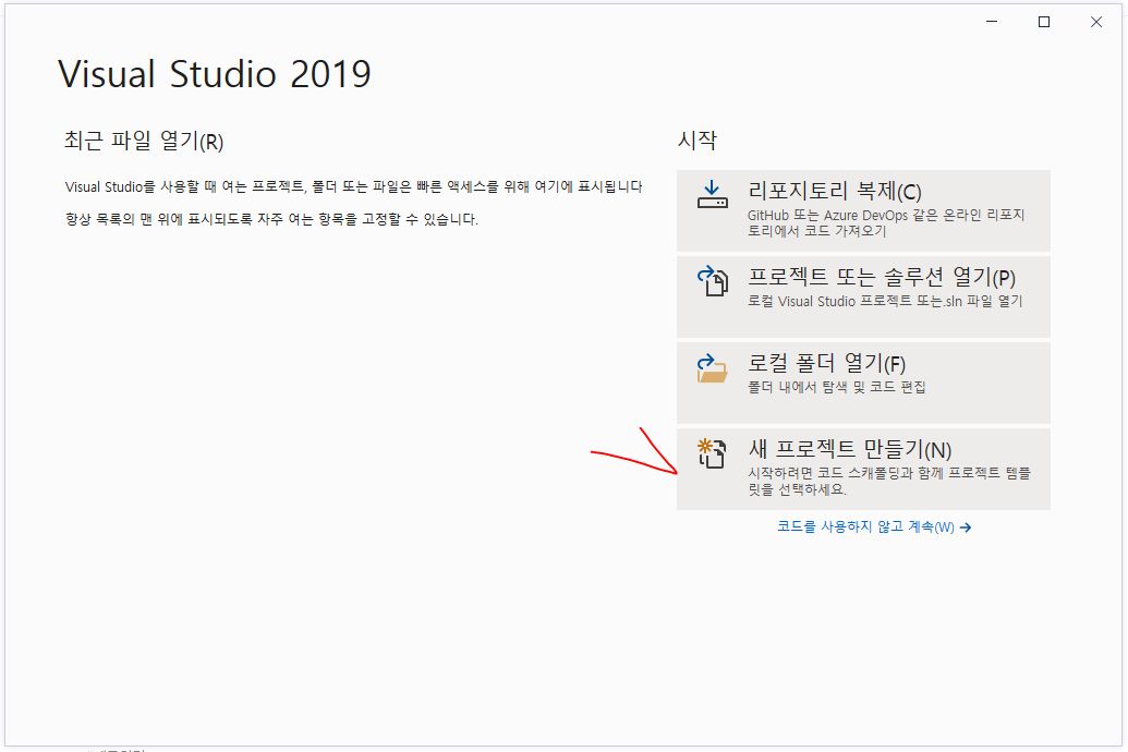 설치가 되었으니 이제 실행 시켜서, '새 프로젝트 만들기'를 눌러 만들어 보겠습니다.
