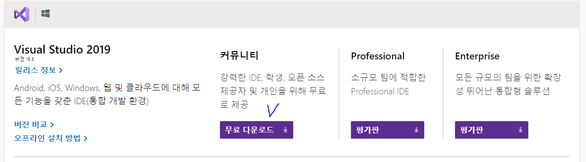 https://visualstudio.microsoft.com/ko/downloads/